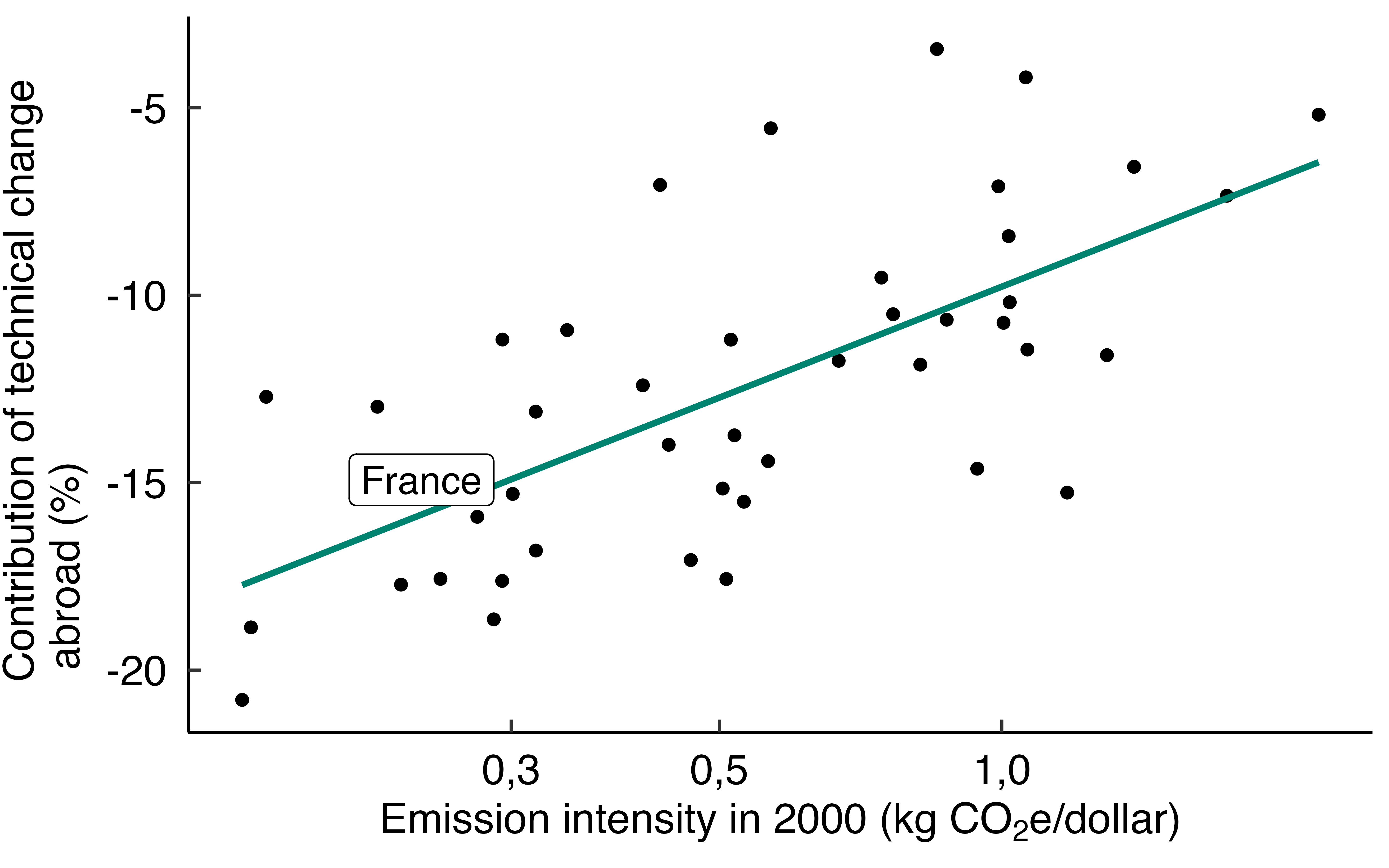 Technological progress abroad contributes more to the reduction of France’s carbon footprint than technological progress in France.